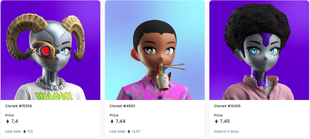 Clone X je Murakamiho první projekt NFT ve spolupráci s RTFKT. NFT z této kolekce můžete získat za přibližně 7,5 ETH, což má v současné době hodnotu asi 11 500 USD.