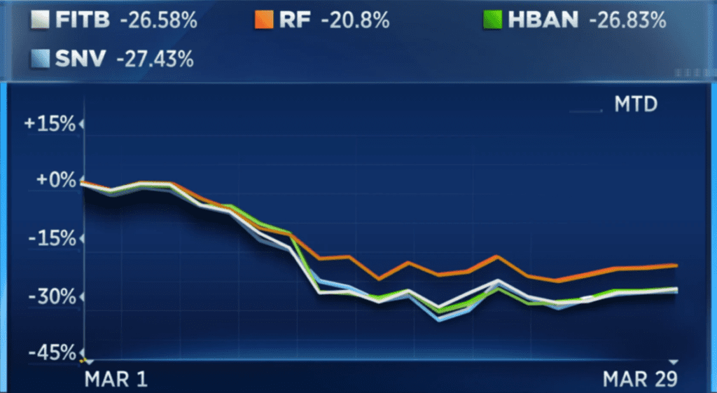 Všechny tyto akcie se v březnu propadly o více než 20 %, protože investoři vystrašení krizí se zbavili akcií regionálních bank.