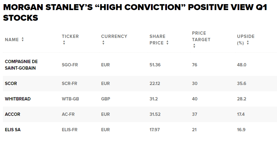 V následující tabulce je uvedeno pět akcií, na které upozornila společnost Morgan Stanley a u kterých jsou její analytici ve výsledky „vysoce přesvědčeni“.