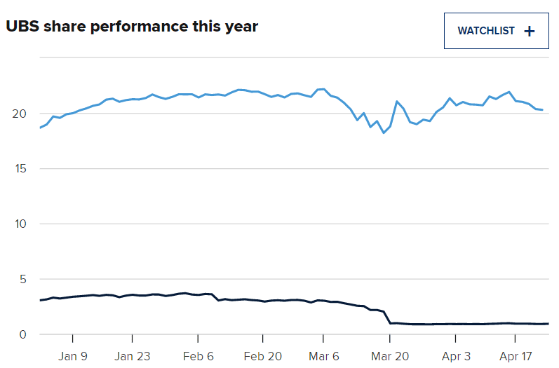 UBS uvedla, že čistý zisk za první čtvrtletí dosáhl 1,03 miliardy dolarů, což je výrazně pod očekáváním analytiků, kteří podle Refinitivu očekávali čistý zisk za toto období ve výši téměř 1,75 miliardy dolarů.