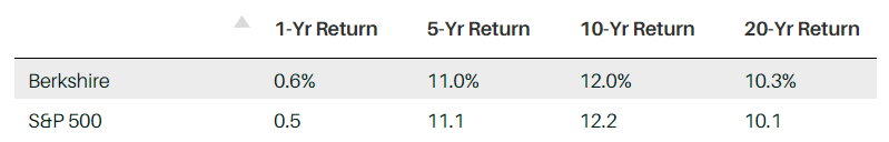 Navzdory tomu, že Warren Buffett umí vybírat akcie, akcie Berkshire dokázaly držet krok pouze s indexem S&P500.