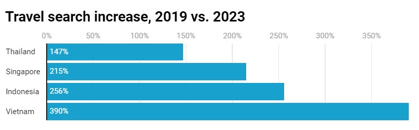 Údaje společnosti ukázaly, že zatímco vyhledávání výjezdů z většiny asijsko-pacifických zemí se od roku 2019 zvýšilo o 30 až 60 %, vyhledávání od cestovatelů z Indie vyskočilo o 225 %.