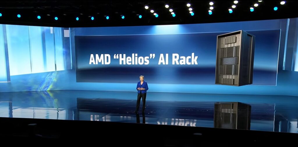 AMD zároveň představila projekt Helios, otevřené rackové řešení pro datová centra, které má být uvedeno na trh v roce 2026. Podle vedení společnosti je vývoj Heliosu „na dobré cestě“ a cílem je stanovit nový standard výkonu pro pokročilé AI aplikace. Racková řešení mají přinést výrazné výkonnostní výhody a lépe odpovídat nárokům moderních systémů, jako jsou AI agenti schopní samostatně vykonávat úkoly jménem uživatele. Právě zde se AMD snaží odlišit komplexním přístupem, který nespočívá jen v prodeji jednotlivých čipů, ale v nabídce celého ekosystému.